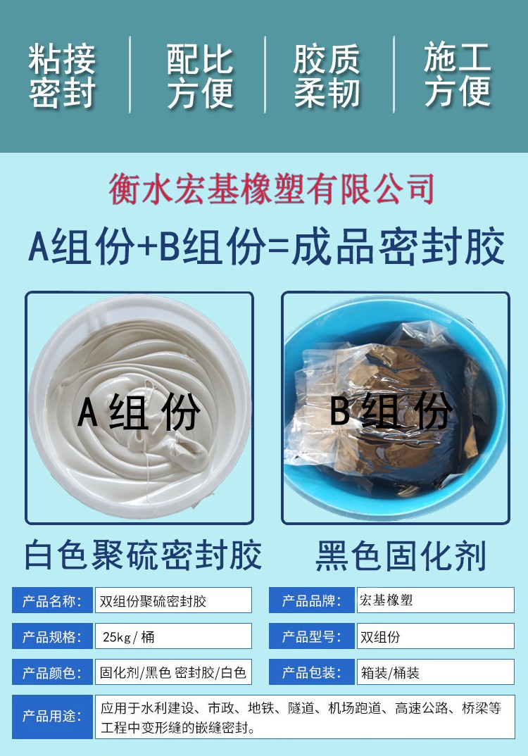 雙組份聚硫密封膠是一液態橡膠為主要基料,雙組份聚硫密封膠具有優良的耐水、耐油、耐老化、耐腐蝕的特性。雙組份聚硫密封膠并以密封性好、粘結力強、彈性好。